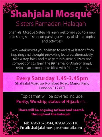 Sisters Halaqah - Saturdays 1.45pm-3.45pm (For Sisters Only)